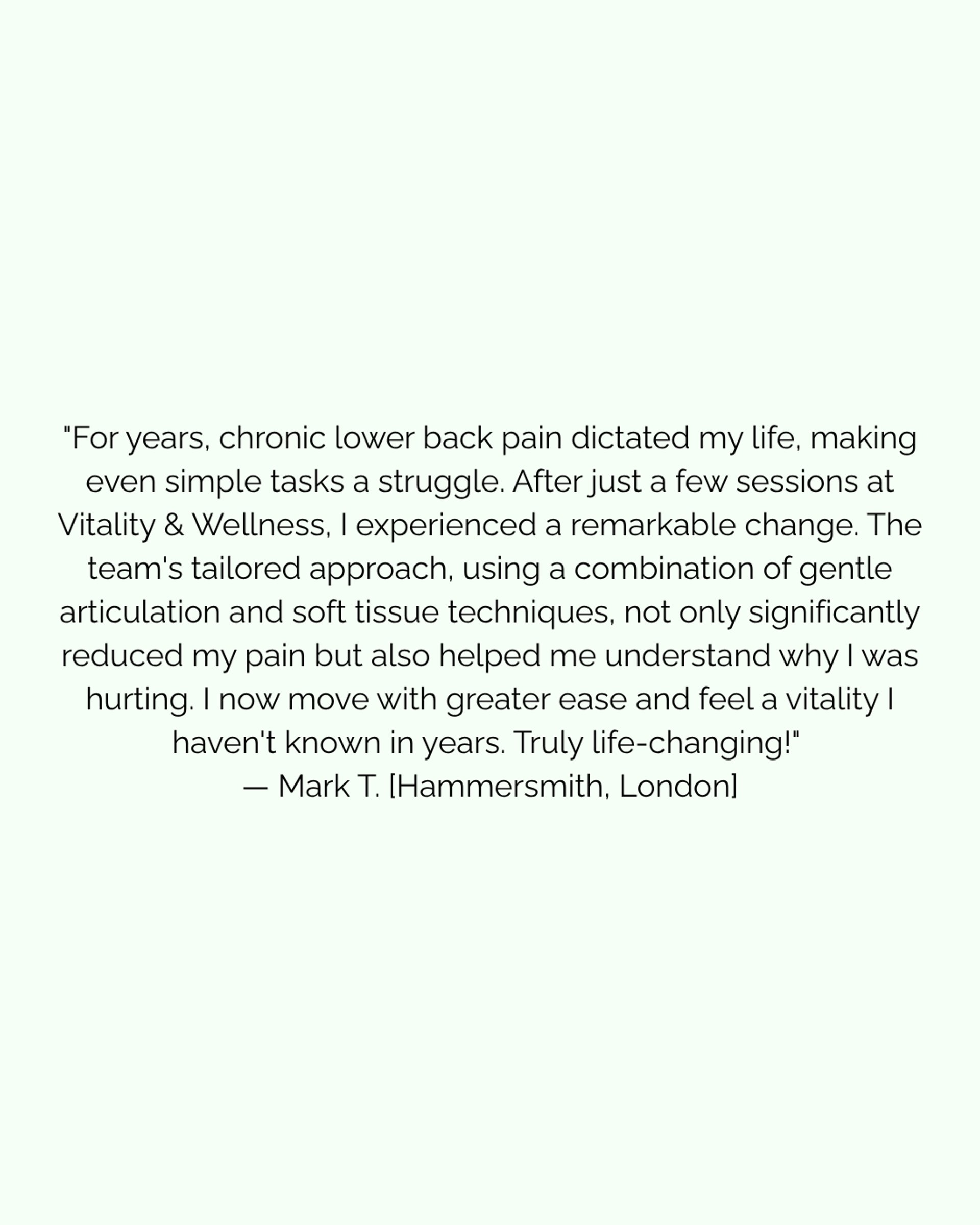 As a fully qualified osteopath, I'm passionate about helping you achieve lasting vitality and well-being. My approach goes beyond simply addressing symptoms; I'm dedicated to understanding the root cause of your discomfort and empowering your body's natural ability to heal.